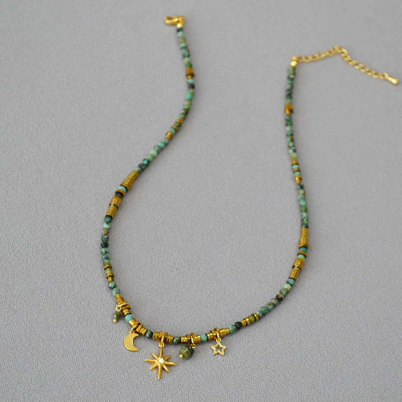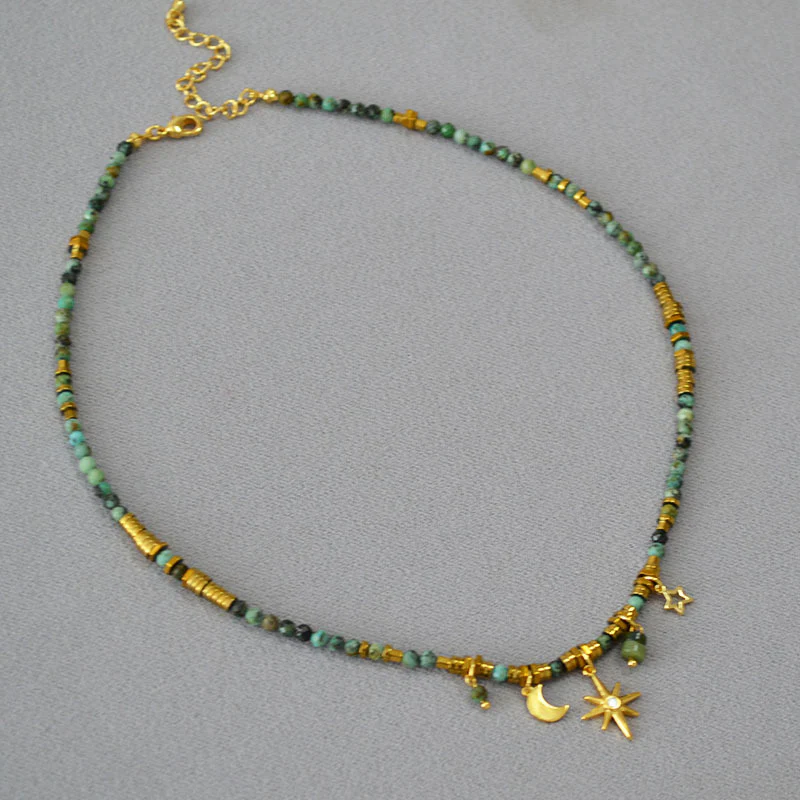 This enchanting necklace combines elegance with a touch of whimsy, featuring a delicate array of charms and beads that embellish any look. Its vibrant design is crafted with precision to offer a unique and stylish accessory for various occasions.