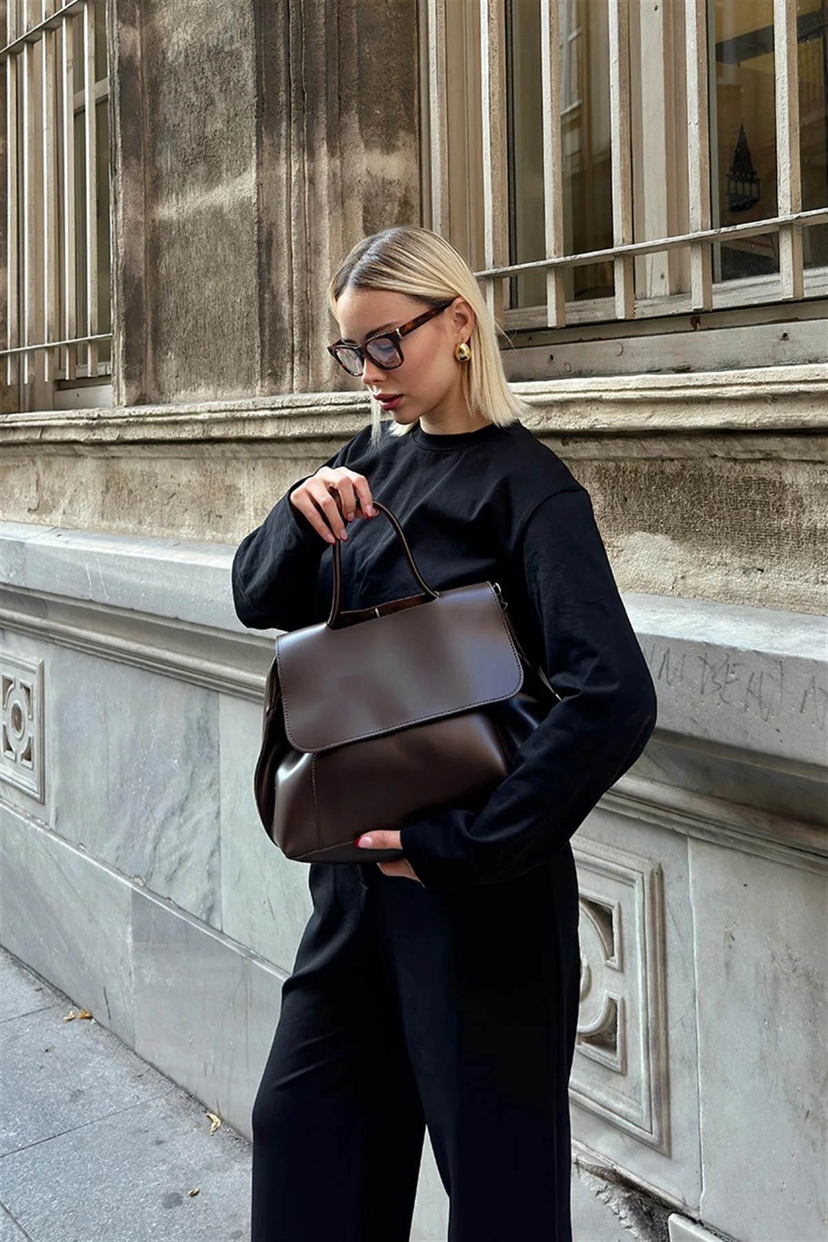 The handbag features a discreet magnetic fastening under the flap for quick and secure closure. It’s both an ideal companion for daily errands and a stylish accessory for special occasions.