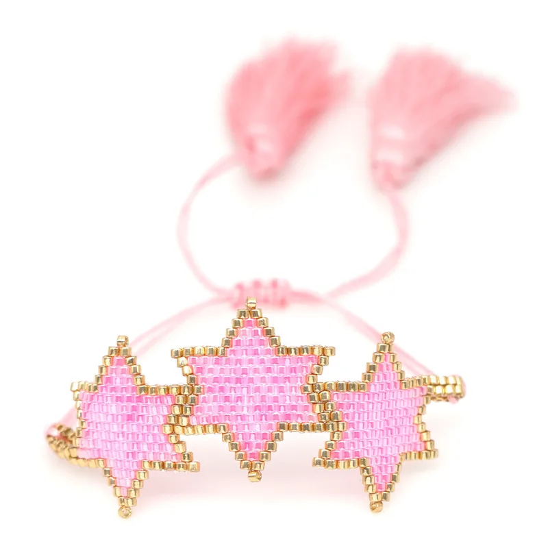 This stylish and unique bracelet features a hand-woven design crafted using high-quality Miyuki beads, a popular choice for affordable and trendy accessories. The beads are carefully arranged in a captivating hexagonal star pattern, adding a touch of geometric elegance to any outfit.